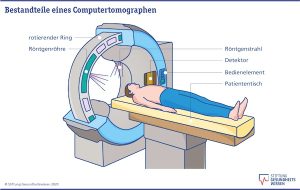 Ich war ja letzte Woche beim CT1Mithilfe einer Computertomographie, kurz CT, können Arzte und Ärztinnen Bilder vom Inneren des Körpers erstellen. Deshalb zählt die CT zu den sogenannten bildgebenden Untersuchungsverfahren. Bei der CT werden Röntgenstrahlen eingesetzt. Erzeugt werden die Bilder mit einem Computertomographen. Das ist ein Apparat mit einem rotierenden Ring im Inneren, durch den der Patient auf einer Liege hindurchgefahren wird. In dem Ring befindet sich ein Röntgengerät: In der einen Ringhälfte ist die Röntgenröhre und in der anderen das Mess-System (Detektoren). Der Ring bewegt sich mit der Röntgenröhre kreisförmig um den Patienten herum. Dabei sendet die Röntgenröhre Röntgenstrahlen aus, die die eingestellte Körperregion von allen Seiten durchdringen. Verschiedene Körpergewebe lassen unterschiedlich viele Strahlen hindurch. Nur die Strahlen, die der Körper durchlässt, treffen auf die Detektoren auf der gegenüberliegenden Seite des Rings., zwecks gucken ob sich was tut mit meinen Tumor. Und was soll ich sagen, das CT hat 2 Dinge gefunden, ein gutes und ein nicht so gutes.